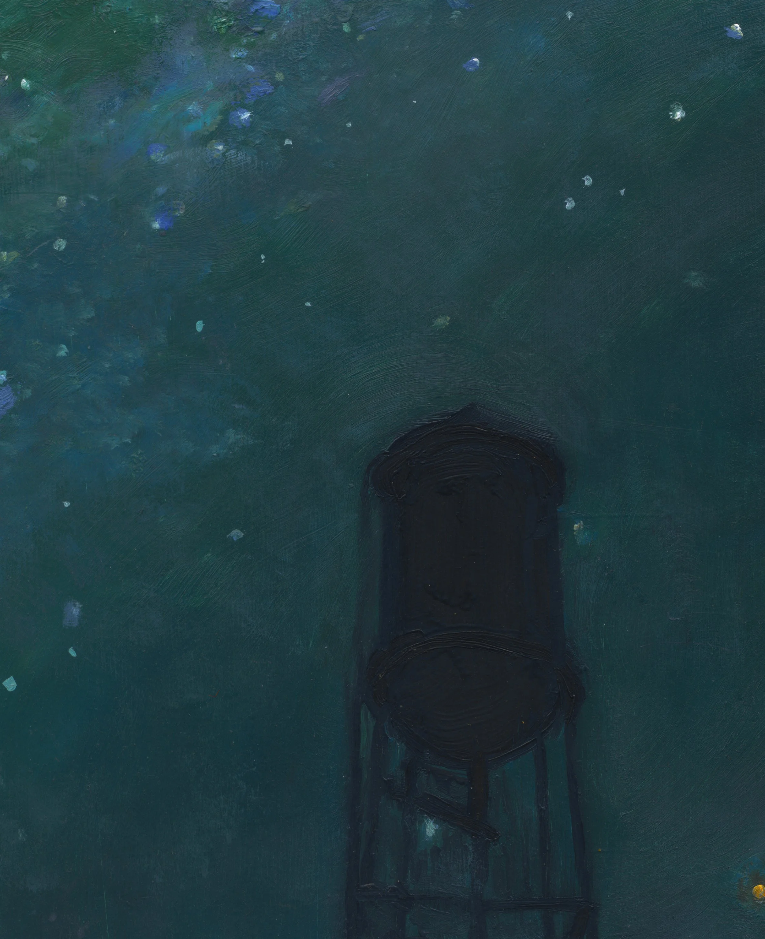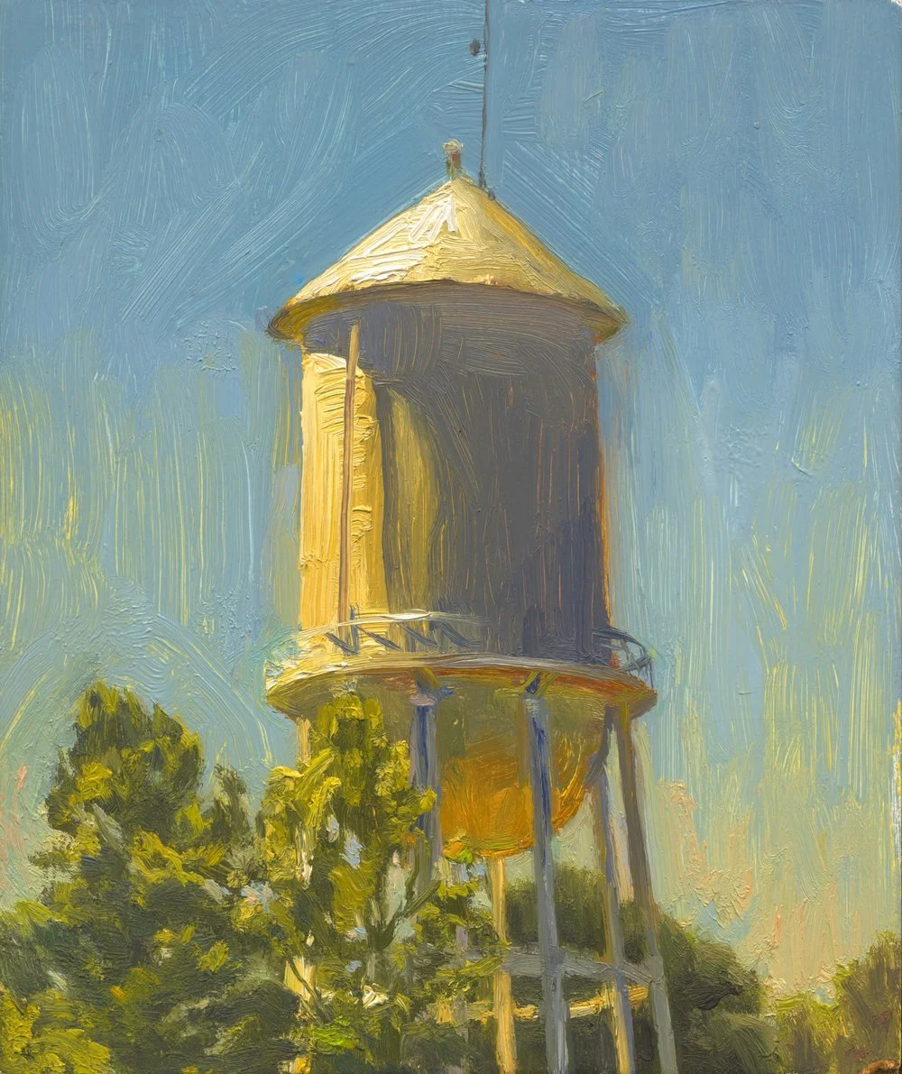 100 Water Towers portray water tanks and fire towers found in skies above and around Lake County, Florida. Tracking down and studying these coolly utilitarian, visually abandoned beacons and the places they help define has given me new insight into idiosyncrasies inherent in tower culture. Translated through paint the towers become metaphors of contrast: of monumentality and insignificance; offensiveness and intrigue; artificiality and nature. Iconic in form, the juxtaposition of these paintings evokes surprise, humor, and enlightenment.
