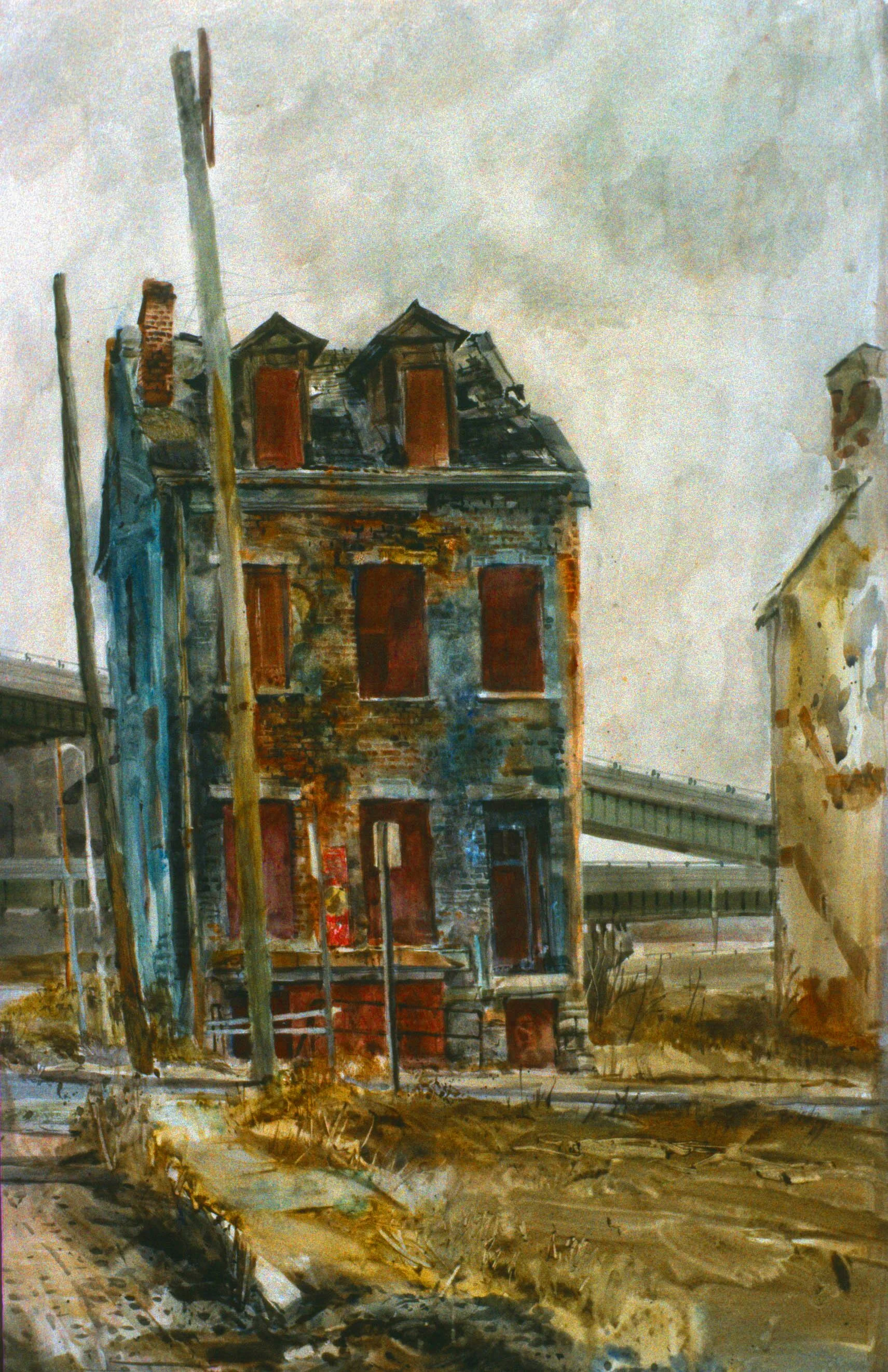 In the southeast corner of Albany, NY is a collection of early Dutch-Holland brick buildings referred to as The Pastures---originally of land cleared for cattle during the period of the first European settlers. After a century the area eventually transformed into more than a dozen city blocks . . . only to be gradually ignored by the surrounding municipality. By the time I arrived on the scene, the quality of abandonment, which on the surface appeared mysterious or sometimes threatening I found to be graphic and entrancing---inciting behavior entrusted to artmaking. The visual attraction to such impoverished urban conditions of the Pastures was secured through the many studies produced over two years on location.
